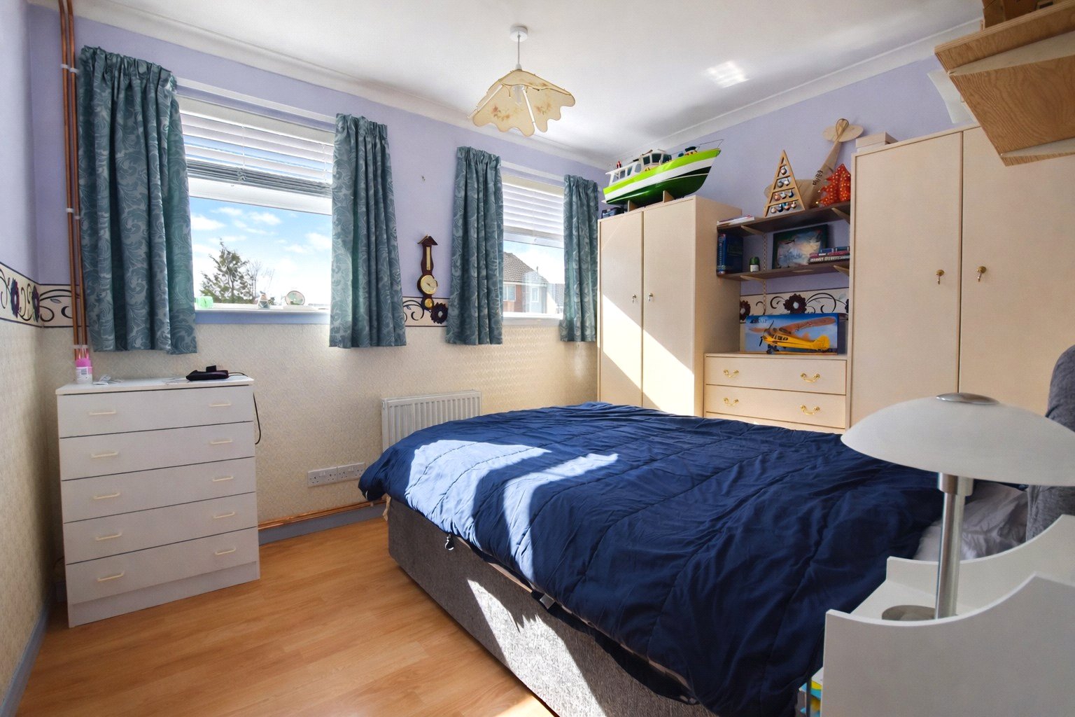 Bedroom One is a generous double room with two double-glazed windows to the front elevation and a radiator.