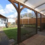 To the rear, the property benefits from a pleasant enclosed garden, featuring a lawn area and a covered patio seating space, ideal for outdoor relaxation and entertaining.