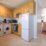 From here, a door leads into the modern fitted kitchen, which is well-equipped with a range of wall and base units, work surfaces with inset sink and drainer, oven, hob and extractor. There is space for both a washing machine and tumble dryer. A UPVC double-glazed window overlooks the rear garden, and a door provides direct access outside.